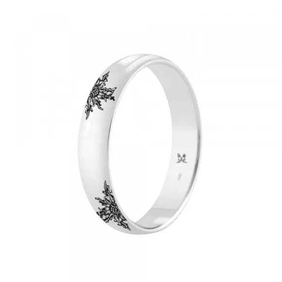 Alianza o anillo solitario de Oro blanco reciclado (750mm – 18kt.) con acabado brillo. Lleva 4 medio Eguzkilores grabados en la parte exterior. Diseño clásico de media caña con interior Confor para que se ajuste y resulte cómoda. Ancho de 4mm. Se puede grabar nombre y fecha en la parte interior. El plazo de entrega con grabación es de 2-4 semanas. El oro es un material un poco más resistente que la plata pero con el uso se suele rayar. Tanto las de acabado brillo como las de acabado mate se rayan, aunque en estas últimas se nota más. Tallas disponibles de la 9 a la 26. Elegir talla en el desplegable.*En caso de querer otra talla no disponible, se entregará en un plazo de 4 semanas. Una vez realizada la grabación no se admiten devoluciones.