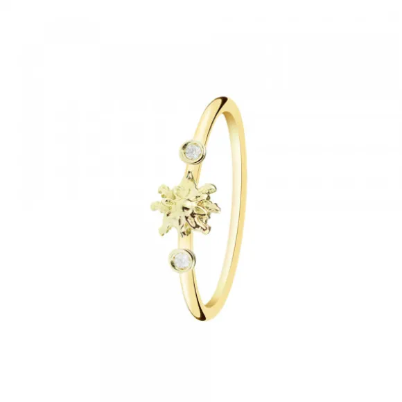 Anillo de Oro Amarillo 1ª Ley reciclado (750mm- 18kt.) con motivo en forma de Eguzkilore y dos brillantes redondos a los lados en la parte central. Talla Nº12.
