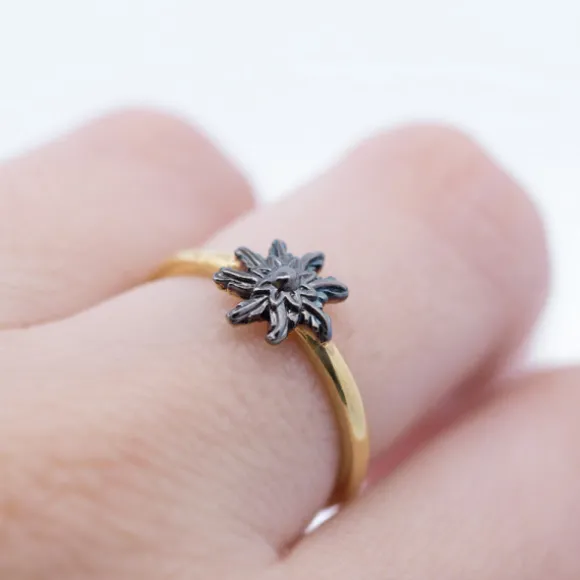 Anillo Ghor Plata Dorada y Eguzkilore Rutenio