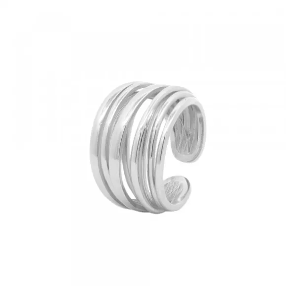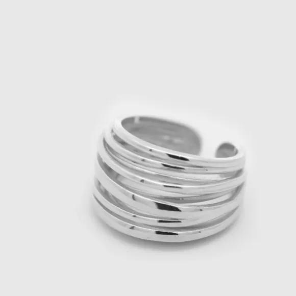 Anillo Hariak de Plata de 1ª Ley (925mm) simulando hilos superpuestos. Anillo abierto con posibilidad de agrandar hasta dos tallas. Diámetro anillo: 20mm. Grosor: 3mm.