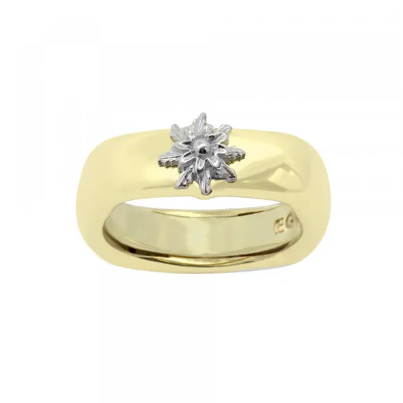 Anillo Olatu de Plata de 1ª Ley (925mm) bañado en Oro 18kt. reciclado con forma cuadrada y mini motivo eguzkilore en plata de ley en la parte central. Lleva fleje en la parte interior con la que poder agrandar y achicar hasta 2 tallas. Diámetro del anillo: 18mm. Grosor de anillo: 5mm. Tallas disponibles: 14 y 18. Seleccionar talla deseada en el desplegable.