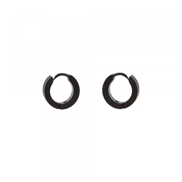Pendientes mini de acero quirúrgico grueso de color negro. Unisex. Cierre catalán. Diámetro del aro: 13mm. Ancho: 4mm.