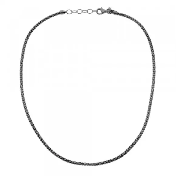 Cadena modelo Bombata de Plata de 1ª Ley (925mm) cubierta por un baño de Rutenio con grosor de 3mm. Medidas disponibles: 42cm (+3cm de alargador), 50cm, 70cm, 80cm. Seleccionar medida en el desplegable.