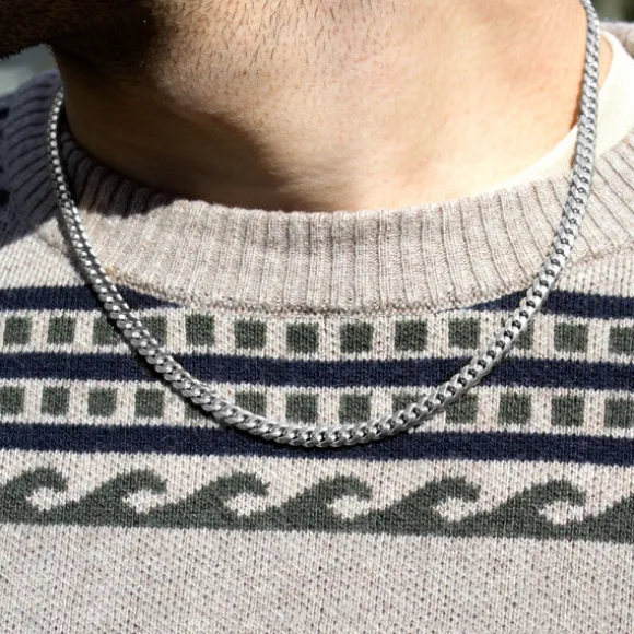 Cadena de eslabones modelo cubano de Plata de 1ª Ley (925mm). El grosor de los eslabones es de 5mm. Cierre de mosquetón. Disponible en largura de 45cm, 50cm y 60cm. Seleccionar la medida deseada en el desplegable.