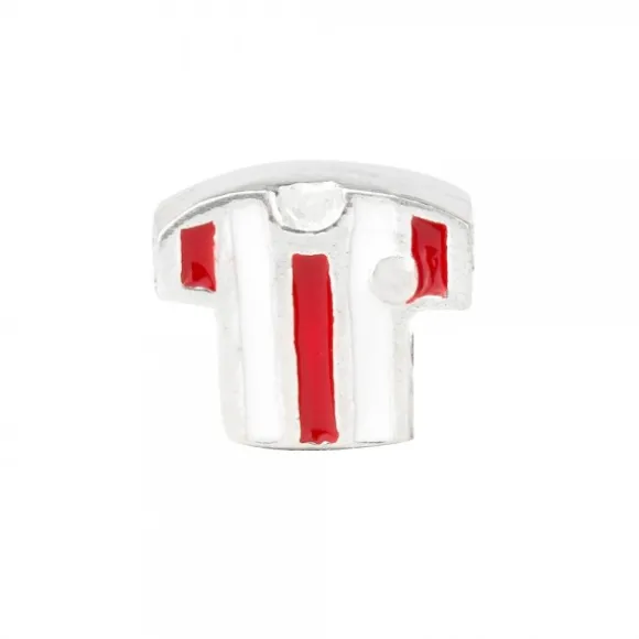 Charm de Plata de 1ª Ley (925mm) con forma de camiseta de fútbol esmaltado en color rojo y blanco. Posibilidad de grabar números o iniciales en la parte trasera. Medidas del charm: Alto 8mm y Ancho 10mm. Pulsera no incluida.* Una vez realizada la grabación, no se admite devolución.