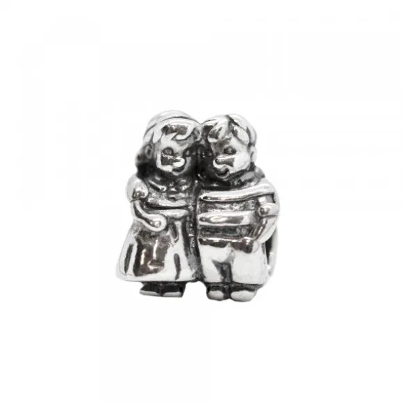 Charm de Plata de 1ª Ley (925mm) con forma de niño y niña. Compatible con pulseras y collares de Eguzkicharm y otras marcas. Diámetro del charm: 10mm de alto y 8mm de ancho.