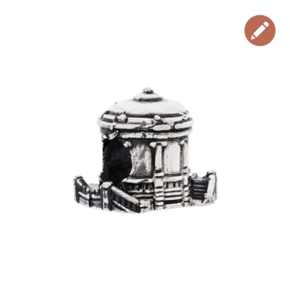 Charm de Plata de 1ª Ley (925mm) con forma del quiosco de La Plaza del Castillo de Pamplona. Compatible con pulseras y collares de Eguzkicharm y otras marcas. Se puede grabar un número o inicial en la parte trasera del charm.*Una vez realizada la grabación, no se admite devolución.