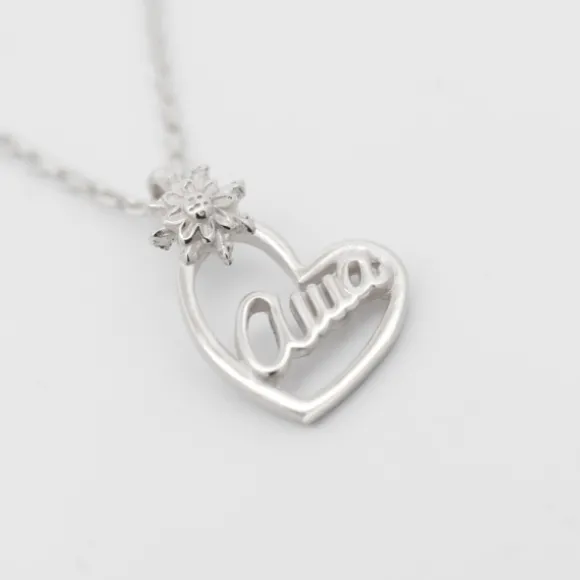 Colgante Ama de Plata de 1ª Ley (925mm) con forma de corazón. En la parte superior contiene motivo Eguzkilore. Esta joya es un homenaje a todas nuestras amatxus (mamá en euskera) y a su amor incondicional. Medida: alto 18mm y ancho 12mm. Medidas de la reasa: alto 6mm y ancho 5mm. Grosor del colgante: 2mm.* Cadena no incluida.