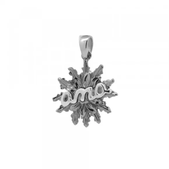 ¡Novedad! Colgante de Plata de 1ª Ley (925mm) con forma de Eguzkilore bañado en rutenio y palabra «ama» en plata en el centro de la pieza. Posibilidad de grabar una inicial o número en la parte trasera. Diámetro Eguzkilore: 18mm. Medida ama: alto 4mm y ancho 15mm. Medida reasa: alto 6mm y ancho 4mm. Cadena no incluida.* Una vez realizada la grabación, no se admite devolución.