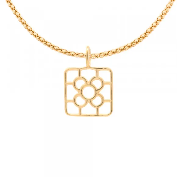 Colgante rectangular en Plata de 1ª Ley (925mm) bañado en Oro 18kt. con motivo de la baldosa de Bilbao calado. Medidas del colgante: alto 22mm y ancho 14mm. Medidas de la reasa: alto 7mm y ancho 6mm. Cadena no incluida.