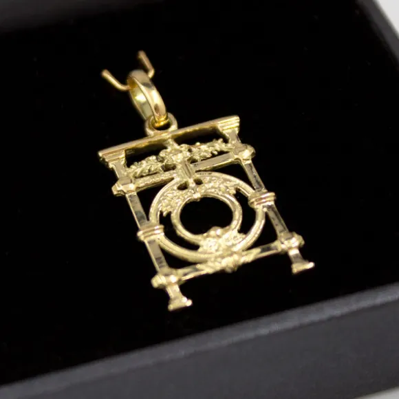 Colgante de Oro reciclado (750mm-18kt.) con motivo de La Barandilla de La Concha de San Sebastián. Medidas del colgante: Alto 26mm y Ancho 18mm. Medidas de la reasa: Alto 7mm y ancho 5mm. Cadena no incluida.