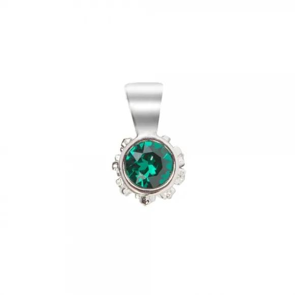 *No se admiten cambios ni devoluciones en artículos de Outlet.Colgante Distira de Plata de 1ª Ley (925mm) con un cristal verde redondo. El cristal está engarzado por las hojas del Eguzkilore. Diámetro del colgante: 7mm. Medidas de la reasa: alto 4mm y ancho 3mm. Cadena no incluida.