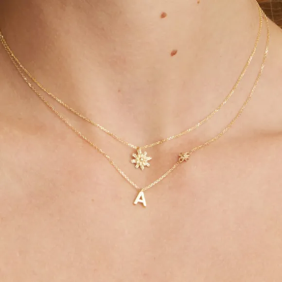 Colgante mini de Oro 1ª Ley reciclado (750mm – 18kt.) en forma de Eguzkilore. Diámetro del Eguzkilore: 9,5mm. Medidas de la reasa: Alto 4mm y Ancho 3mm. Cadena no incluida.