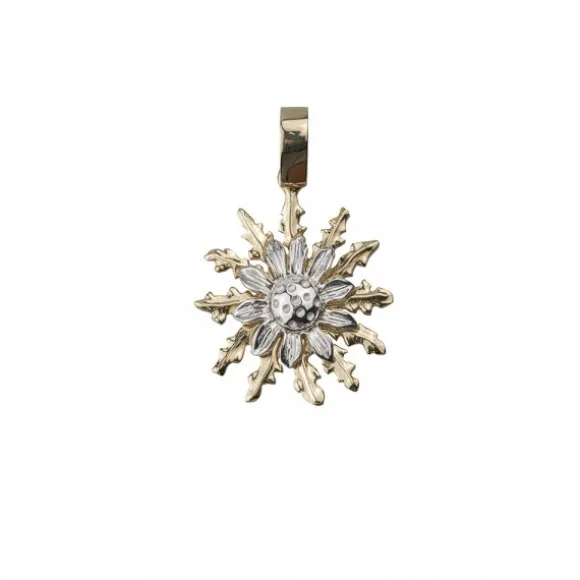Colgante Eguzkilore de Oro bicolor reciclado (750mm-18kt.) en el centro del Eguzkilore contiene Oro Blanco de 1ª Ley. Diámetro del Eguzkilore: 21mm. Medidas de la reasa: Alto 7mm y Ancho 2mm. Cadena no incluida.