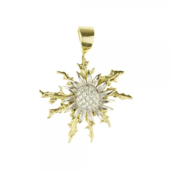 Colgante Eguzkilore de Oro amarillo 18kt. reciclado (750mm) estilo clásico combinado con diamantes talla brillante en la parte central. Tamaño del colgante: 37mm. Cadena no incluida.