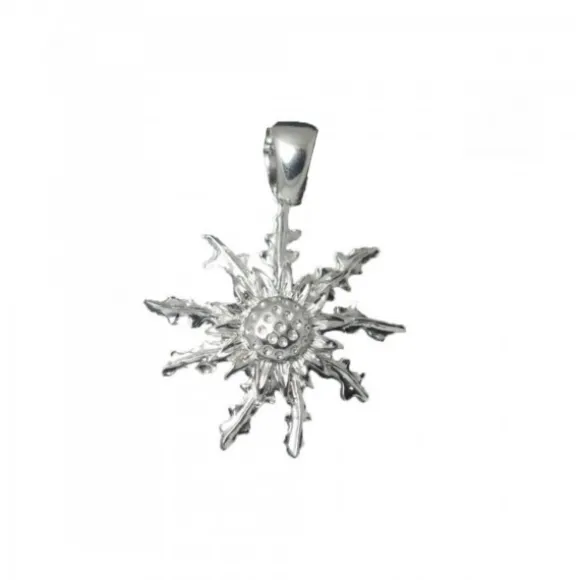 Colgante Eguzkilore de Plata de 1ª Ley (925mm). Diámetro del Eguzkilore: 29mm. Medidas de la reasa: Alto 9mm y Ancho 4mm. Cadena no incluida.