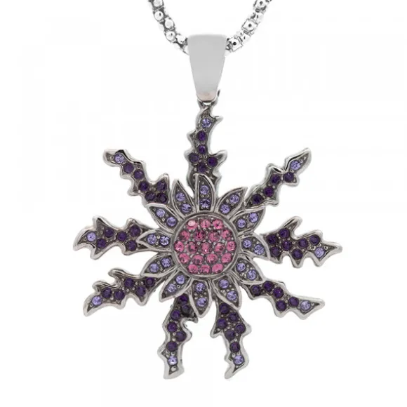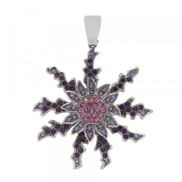 Colgante Eguzkilore de Plata de 1ª Ley (925mm) bañado en rutenio cubierto por circonitas en tonalidades moradas. Diámetro del Eguzkilore: 45mm. Medidas de la reasa: Alto 10mm y ancho 6mm. Diámetro de cada circonita: 1mm. Cadena no inlcuida.