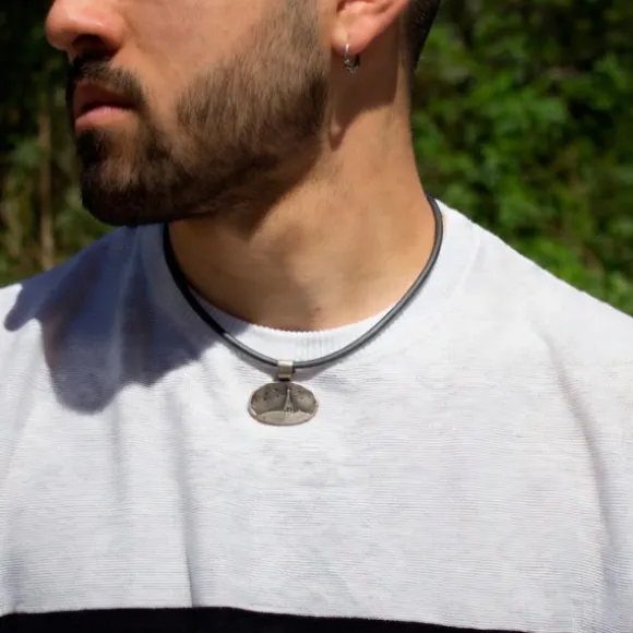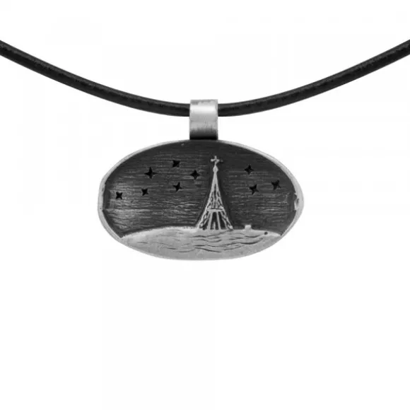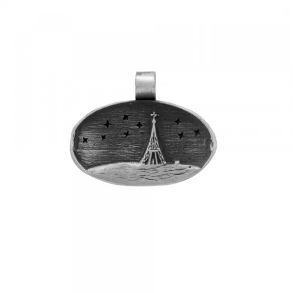Colgante Gorbea de Plata de 1ªLey (925mm) con acabado rústico y forma ovalada fabricado artesanalmente. «La Cruz de Gorbea», ubicada el la cima del monte Gorbea, se instauró como símbolo religioso para dar inicio al siglo XX, hoy en día, es todo un referente para los montañeros y amantes de la naturaleza y el deporte. Medida colgante: alto 15mm y ancho 25mm. Medida reasa: 3mm. Posibilidad de comprar junto a cable de acero triple hilo a juego, selecciona en el desplegable.