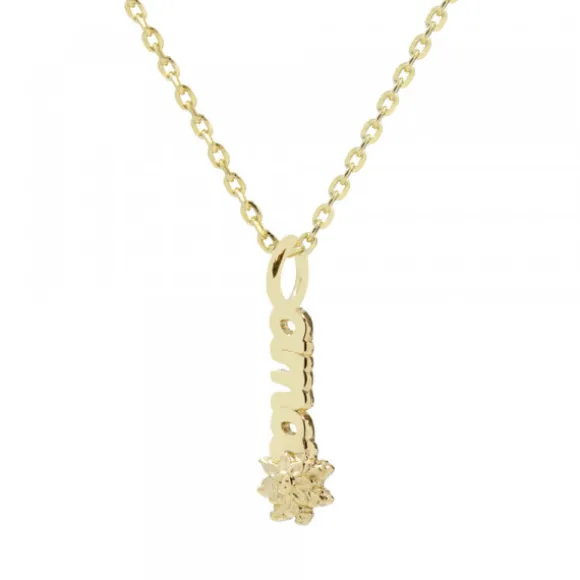 Colgante de Plata de 1ª Ley (925mm) bañado en oro amarillo de 18kt. con la palabra «ama» y mini Eguzkilore en el extremo. Diámetro de la reasa: 6mm. Diámetro de la pieza: Alto 15mm y ancho 3mm. Diámetro del Eguzkilore: 6mm. Cadena no incluida.