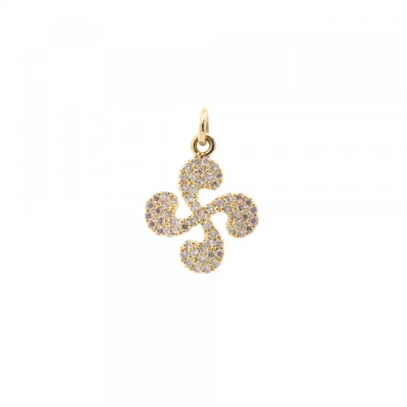 Colgante Mini Lauburu Oro y Brillantes 10mm