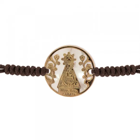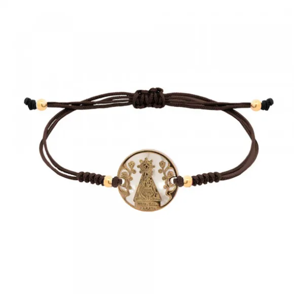 *No se admiten cambios ni devoluciones en artículos de Outlet.Pulsera ajustable de hilo negro de Plata de 1ª Ley (925mm) bañada en oro 18kt. y nácar con motivo de la Virgen de Arrate. Diámetro de la pieza: 20mm.