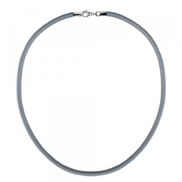 Cordón de caucho gris de 4mm de grosor con cierre de Plata de 1ª Ley (925mm). Larguras disponibles de 40cm, 45cm y 50cm. Seleccionar la longitud deseada en el desplegable.