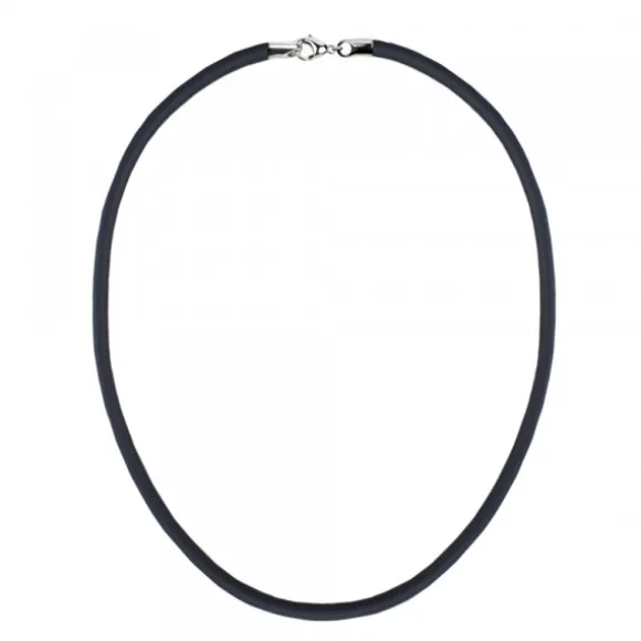 Cordón de caucho de color negro de 3mm de grosor con cierre de Plata de 1ª Ley (925mm). Medidas disponibles en 40cm, 45cm y 50cm. Seleccionar la medida deseada en el desplegable.
