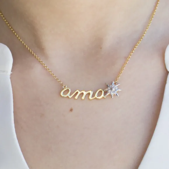 Gargantilla Ama Plata Dorada y Eguzkilore Plata