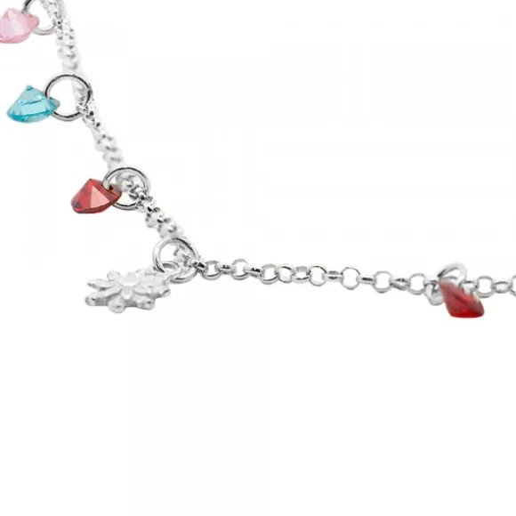 Gargantilla Eguzkilore de Plata de 1ª Ley (925mm) con cristales multicolor colgando. Cadena tipo rolo. Largura gargantilla: 44.5cm. (42cm + 3cm de alargador para ajustarlo a la medida deseada). Diámetro Eguzkilore: 5mm. Diámetro cristales: 3mm.
