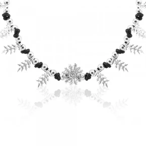 *No se admiten cambios ni devoluciones en artículos de Outlet.Gargantilla con cordón de cuero negro y 10 piezas de bisutería (Zamak) en brillo con forma de hojas y motivo Eguzkilore redondo en la parte central. Medida del collar: 44cm. Diámetro del Eguzkilore: 19mm. Medida hojas: alto 20mm y ancho 10mm.
