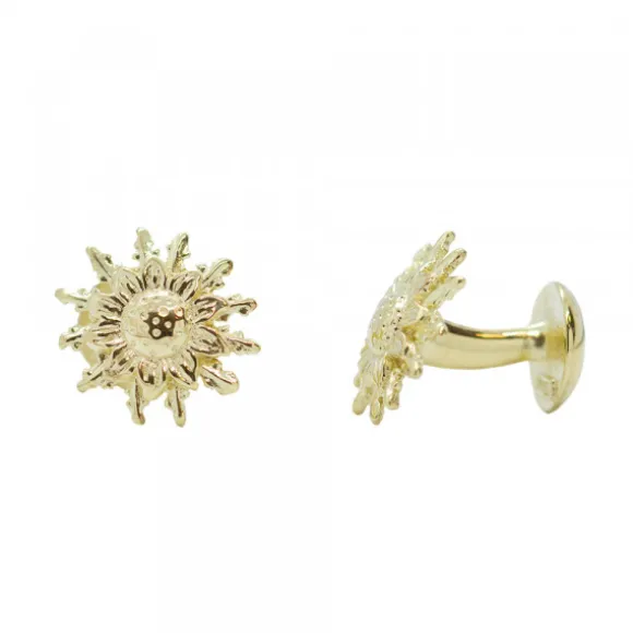 Gemelos de Plata de 1ª Ley (925mm) bañados en oro 18kt. con forma de la flor eguzkilore, nuestro símbolo protector de la mitología Vasca. Medida de la pieza: 16mm. Modelo original de Joyerías Eguzkilore con el que darle un toque especial a tu traje de novio.