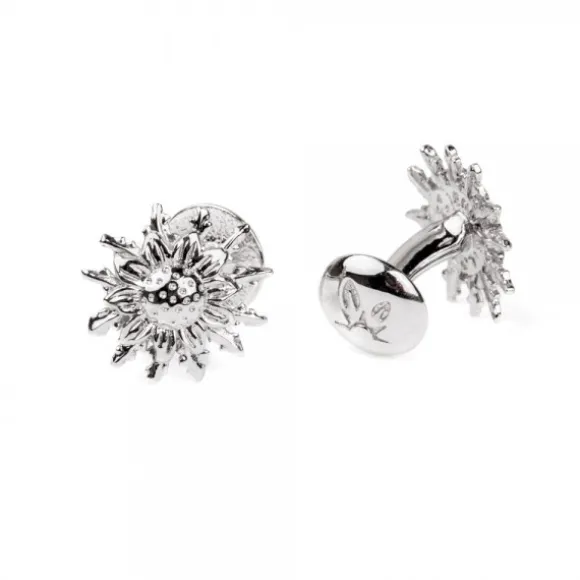 Gemelos de Plata de 1ª Ley (925mm) con forma de la flor eguzkilore, nuestro símbolo protector de la mitología Vasca. Medida de la pieza: 16mm. Modelo original de Joyerías Eguzkilore con el que darle un toque especial a tu traje de novio.