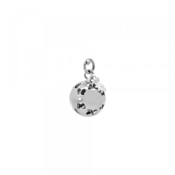 Llamador de Ángeles bola de Plata de 1ª Ley (925mm) calada con motivos en forma de mariposas. Incluye mini motivo en forma de Eguzkilore también en plata de ley. Diámetro del llamador: 18mm. Diámetro de la reasa: 6mm. Tamaño del motivo eguzkilore: 6mm. Con posibilidad de comprar con cadena de plata a juego de 110cm de largura. Seleccionar en el desplegable.