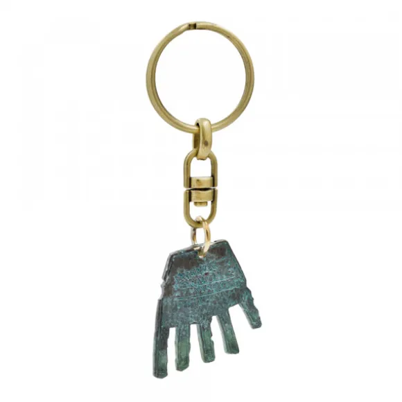 *Como colaboradores oficiales, una parte de los beneficios van destinados a las investigaciones de la Sociedad de Ciencias Aranzadi. Saber más en el siguiente enlace.Llavero con forma de la mano de Irulegi con doble anilla y cadena de latón. La mano es de plata de 1ª Ley (925mm) y contiene tres palabras, «Sorioneku» inscrita en la parte superior y las dos siguientes procedentes del texto original aún no descifradas. Lleva un tratamiento activado con sales ácidas con baño de cobre o latón electrónico pavonado en negro y oxidado en verde secado al aire. Antiguamente era un objeto ritual que se colgaba en la puerta de la entrada de la vivienda para proteger el hogar. Medida llavero: alto 84mm y ancho 30mm. Medida Mano de Irulegi: 30mm.*Al tratarse de un artículo elaborado artesanalmente, con el uso y paso del tiempo podría desteñir.