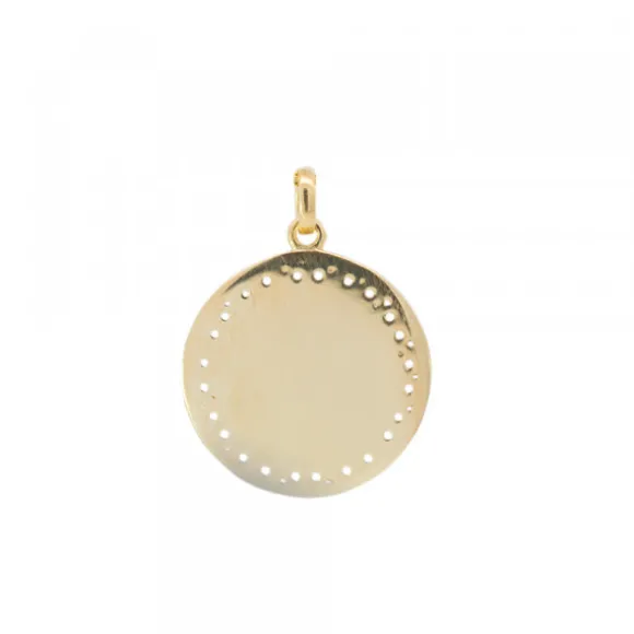 Medalla San Fermín de Plata de 1ª Ley (925mm) bañado en oro amarillo de 18kt. con forma redonda. Posibilidad de grabar un nombre corto o fecha en la parte de atrás. Diámetro Medalla: 20mm. Medida reasa: 5mm alto y 4mm ancho. Cadena no incluida.* Una vez realizada grabación, no se admite devolución.