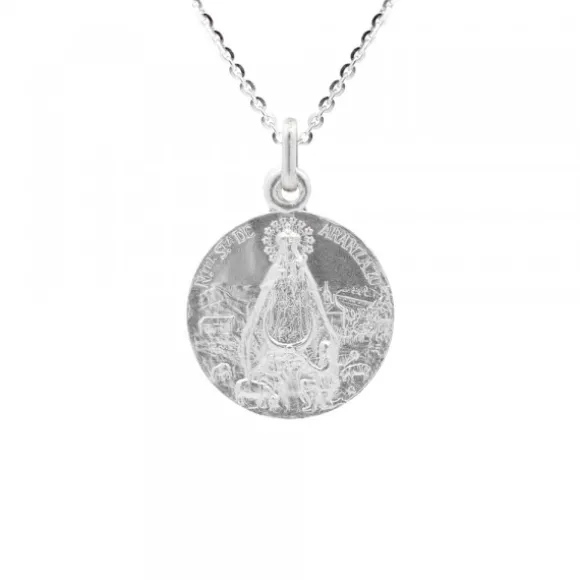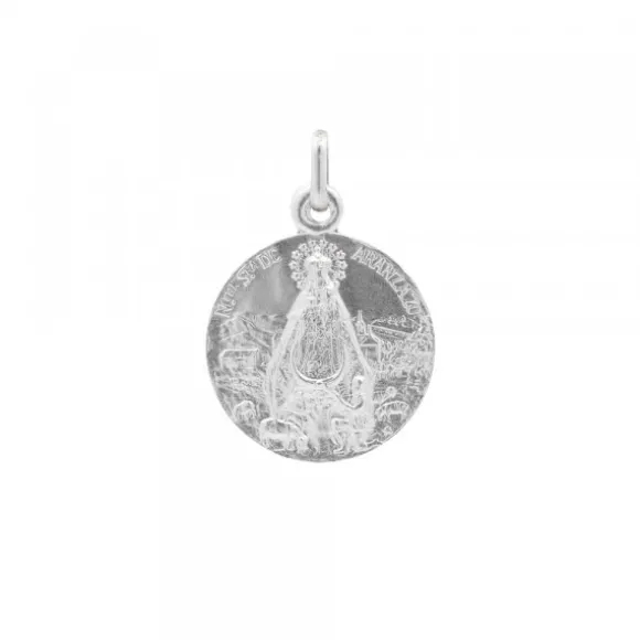 ¡Nueva! Medalla mini de la Virgen de Aranzazu en Plata de 1ª Ley (925mm) con acabado mate. Posibilidad de grabar un nombre corto o fecha en la parte trasera de la medalla. Diámetro medalla: 17mm. Medidas reasa: alto 6mm y ancho 4mm. Grosor medalla: 1mm. Cadena no incluida.* Una vez realizada la grabación, no se admite devolución.