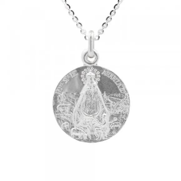 ¡Nueva! Medalla de la Virgen de Aranzazu en Plata de 1ª Ley (925mm) con acabado mate. Posibilidad de grabar un nombre corto o fecha en la parte trasera de la medalla. Diámetro medalla: 20mm. Medidas reasa: alto 6mm y ancho 4mm. Grosor medalla: 1mm. Cadena no incluida.* Una vez realizada la grabación, no se admite devolución.