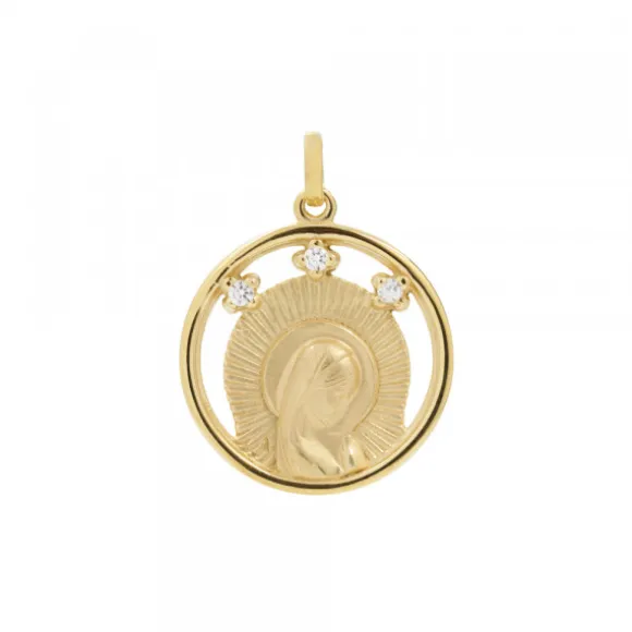 Medalla Virgen Niña Plata Dorada y Circonitas 15mm
