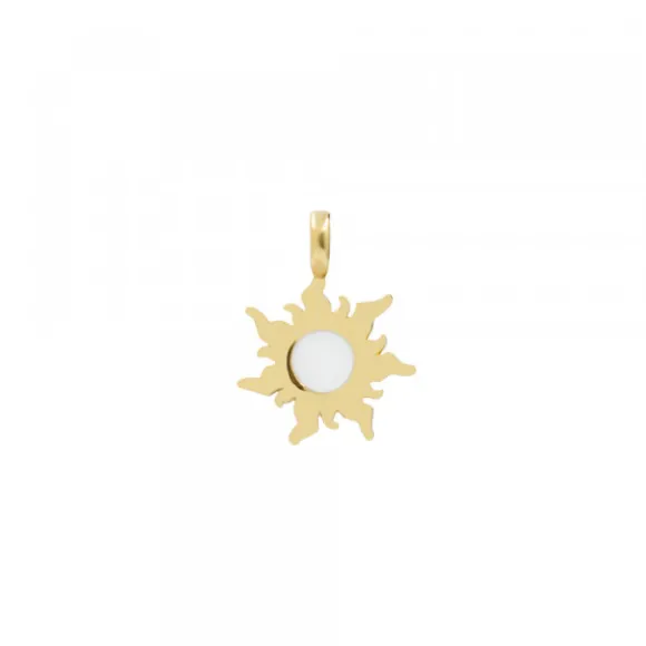 *No se admiten cambios ni devoluciones en artículos de Outlet.Colgante mini de Plata de 1ª Ley (925mm) bañado en oro amarillo de 18kt. de la colección Mountain con esmalte blanco en el centro. Diámetro del colgante: 11mm. Diámetro de la reasa: 4mm. Largura del colgante con reasa: 15mm.