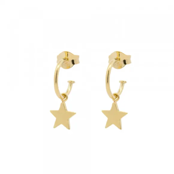 *No se admiten cambios ni devoluciones en artículos de Outlet.Pack de colgante y pendientes de aro en Plata de 1ª Ley (925mm) bañada en oro 18kt. con pieza de adorno en forma de estrella. Los pendientes de aro tienen cierre de presión. Diámetro del aro: 10mm. Grosor del aro: 1mm. Medida del colgante: Ancho:11mm y Alto: 15mm.