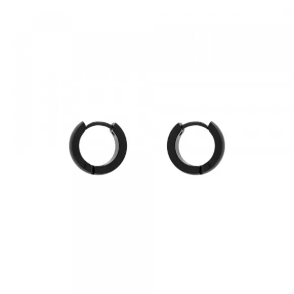 Pendientes mini de acero quirúrgico negro. Unisex. Cierre catalán. Diámetro del aro: 13mm. Grosor de 3mm.