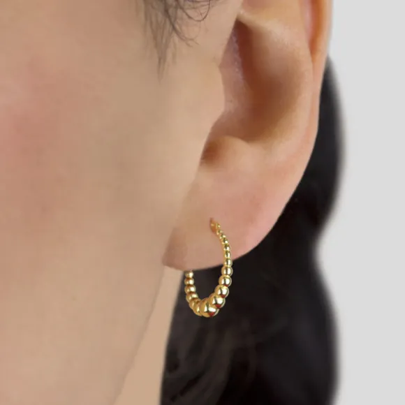 Pendientes de Aro de Plata de 1ª Ley (925mm) formado por bolitas bañados en oro de 18kt. Cierre criolla. Diámetro del aro: 15mm.
