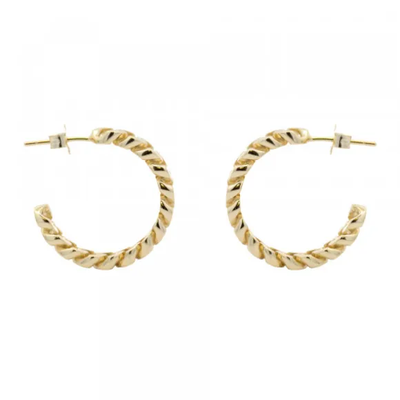 Pendientes de Aro de Plata de 1ª Ley (925mm) bañado en oro de 18kt. con forma de cadena. Cierre presión. Diámetro del aro: 22mm.