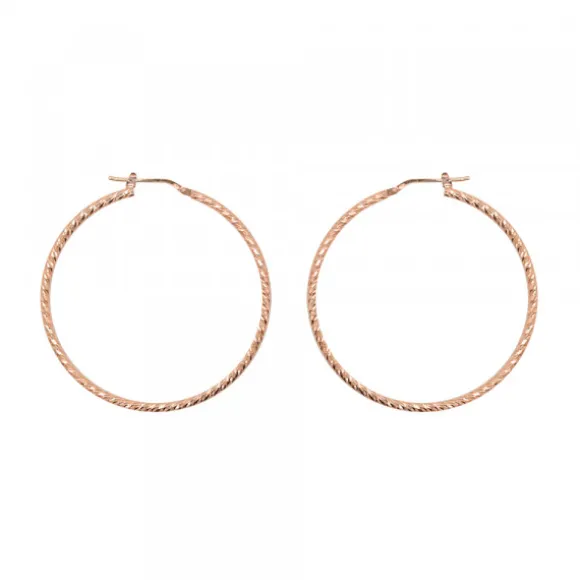 Pendientes de Aro Entorchado de Plata de 1ª Ley (925mm) bañados en oro rosa de 18kt. con acabado entorchado. Cierre criolla. Diámetro del aro: 45mm.
