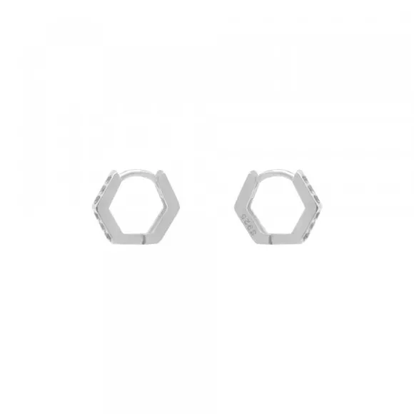 Pendientes Aro Mini Hexagon de Plata con Circonitas Blancas