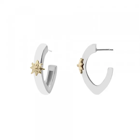 Pendientes de aro Olatu de Plata de 1ª Ley (925mm) de forma plana con motivo Eguzkilore de plata bañado en Oro 18kt. reciclado en el centro. Medidas del aro: 20mm de largo y 14mm de ancho.