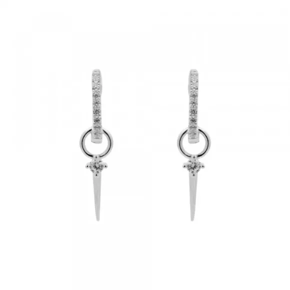Pendientes de Aro de Plata de 1ª Ley (925mm) con circonitas blancas. Motivo de punta larga con una circonita. Medidas del diámetro del aro: 0,7mm. Medidas de la punta: 10mm de largo.