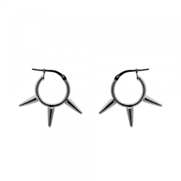 Pendientes de Aro de Plata de 1ª Ley (925mm) con tres púas bañado en rutenio. Cierre criolla. Medidas del diámetro del aro: 12mm. Medidas de las púas: 8mm de largo.