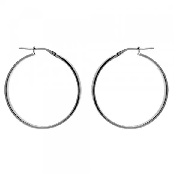 Pendientes de Aro de Plata de 1ª Ley (925mm) bañados en rutenio. Cierre criolla. Diámetro del aro: 32mm. Grosor del aro: 0,3mm