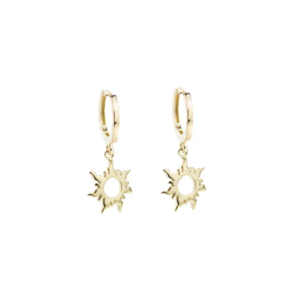 Pendientes de Plata de 1ª Ley (925mm) bañados en Oro Amarillo de 18kt. reciclado con cierre catalán y motivo en forma de Eguzkilore. Medida de los pendientes: Largo: 25mm. Diámetro del motivo Eguzkilore: 10mm.